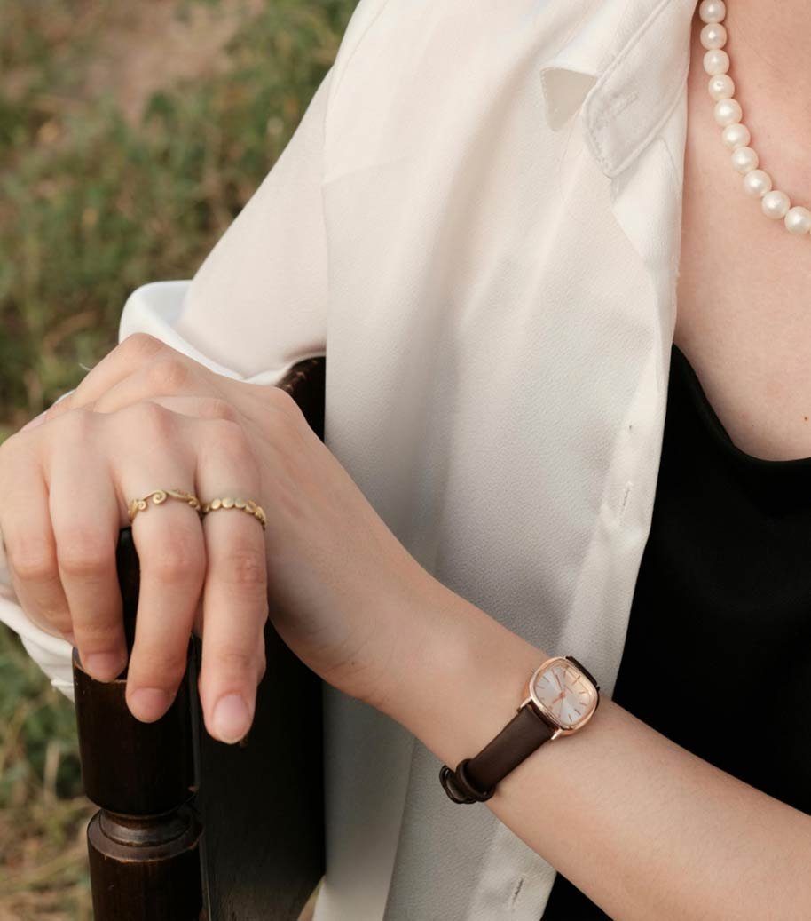 Embracing elegance, this watch signifies devotion